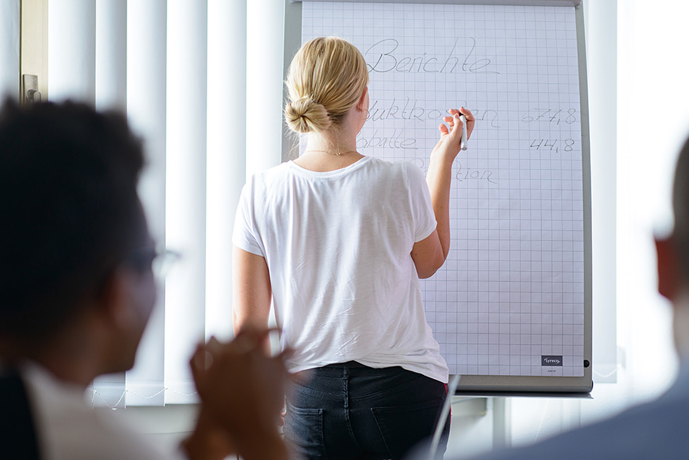 Viele Vorlesungsinhalte im Studium können Studierende durch praktische Versuche im Labor vertiefen. Dafür stellt die DHBW Mannheim zahlreiche modern ausgestattete Labore zur Verfügung. Aufnahmen in den Bereichen Interieur und Szenen mit Studierenden.